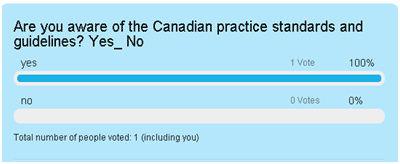 - Professional practice and ethics: “Are you aware of the Canadian practice standards and guidelines?” Yes___ no ___